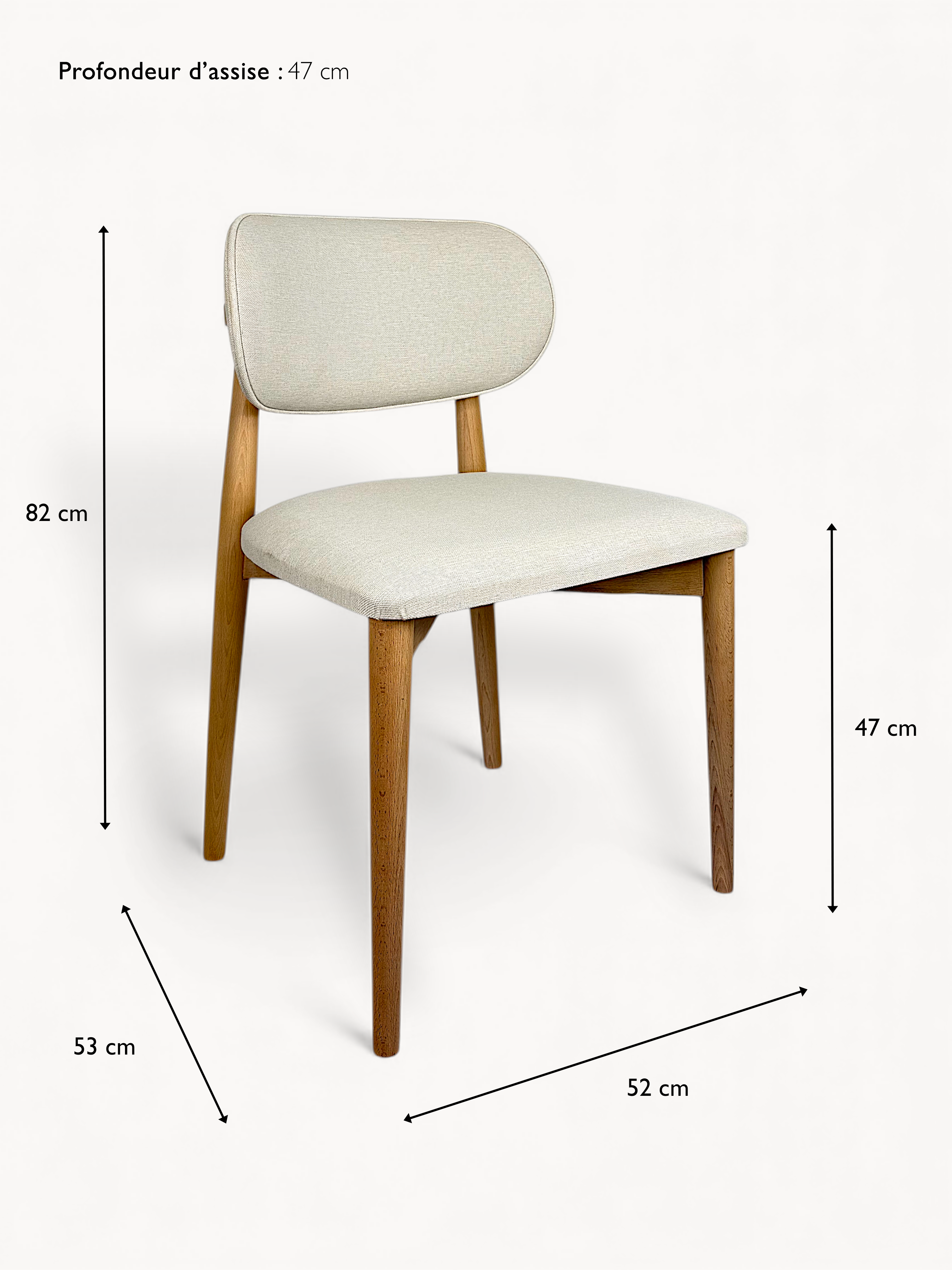 Bois de hêtre + assise en tissu texturé beige effet lin naturel