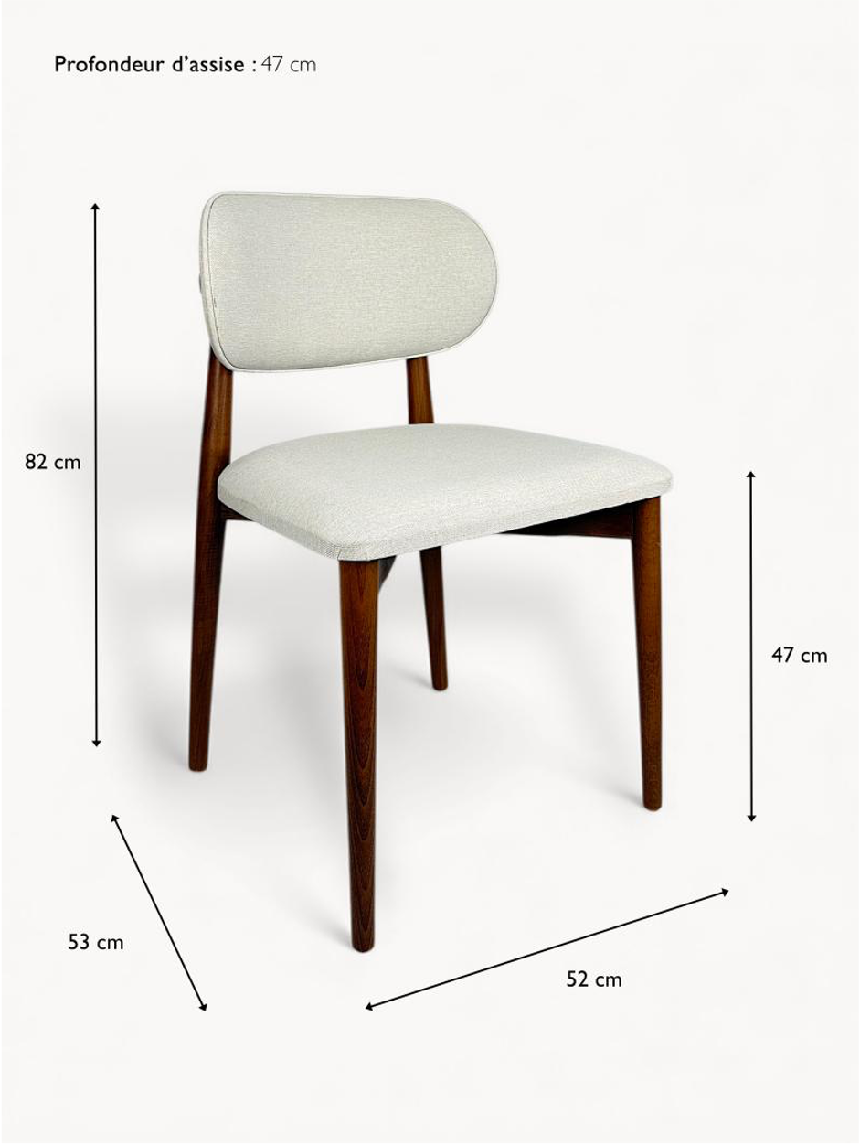 Bois de hêtre + assise en tissu texturé beige effet lin naturel