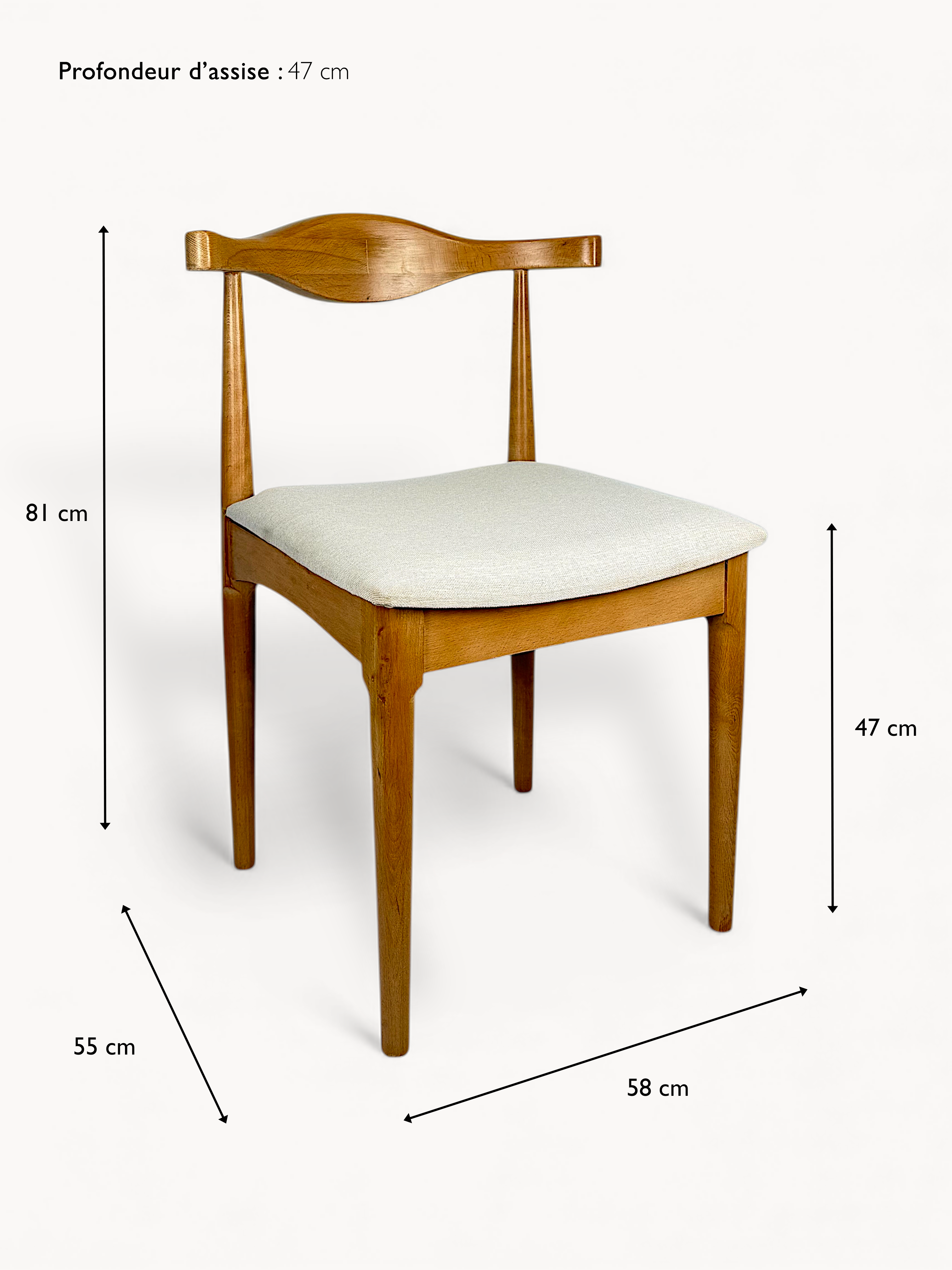 Bois de hêtre + assise en tissu texturé beige effet lin naturel