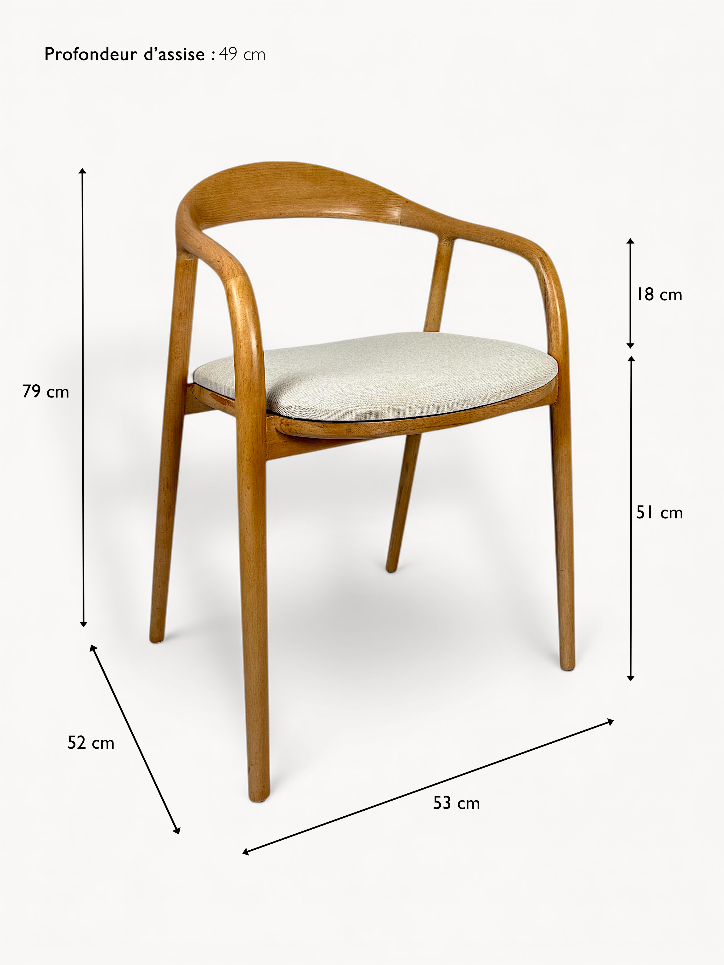 Bois de hêtre + assise en tissu texturé beige effet lin naturel